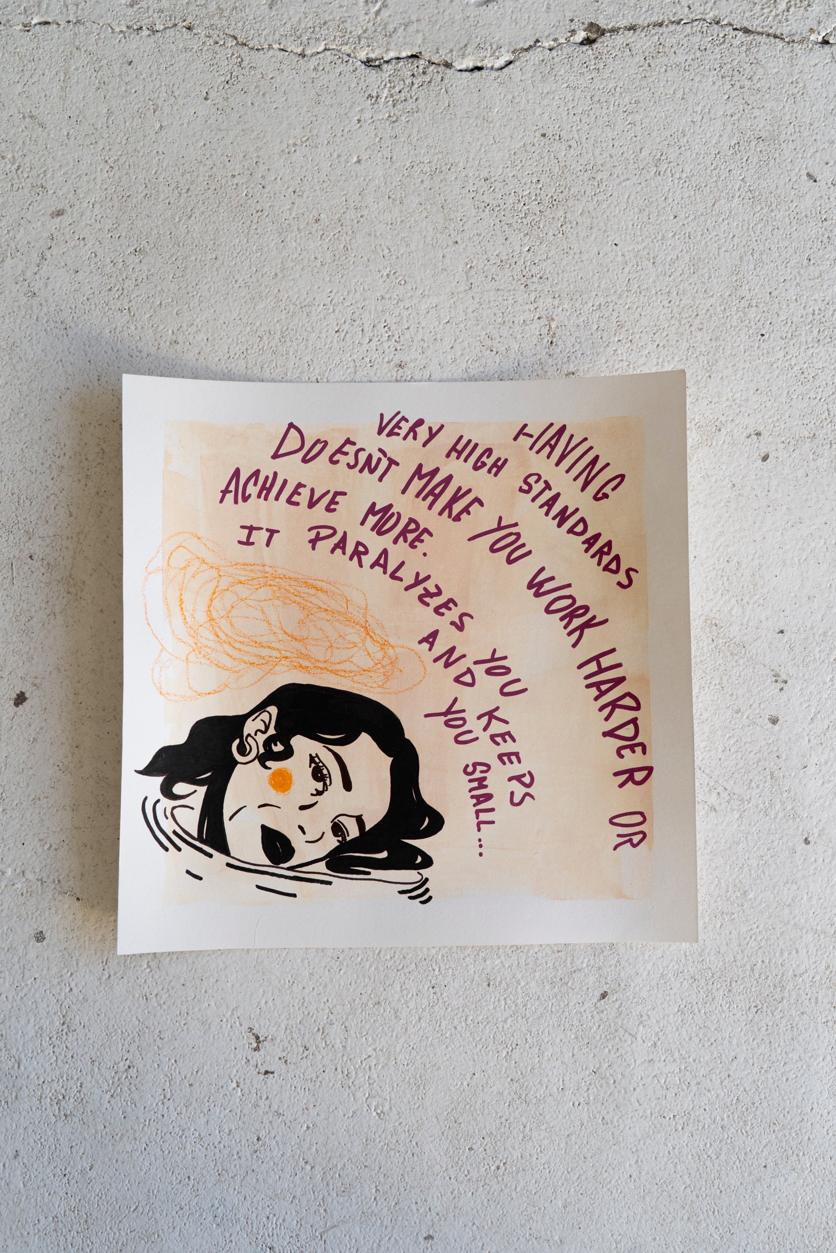 Ilustração original pintada à mão em papel, criada com tinta acrílica.