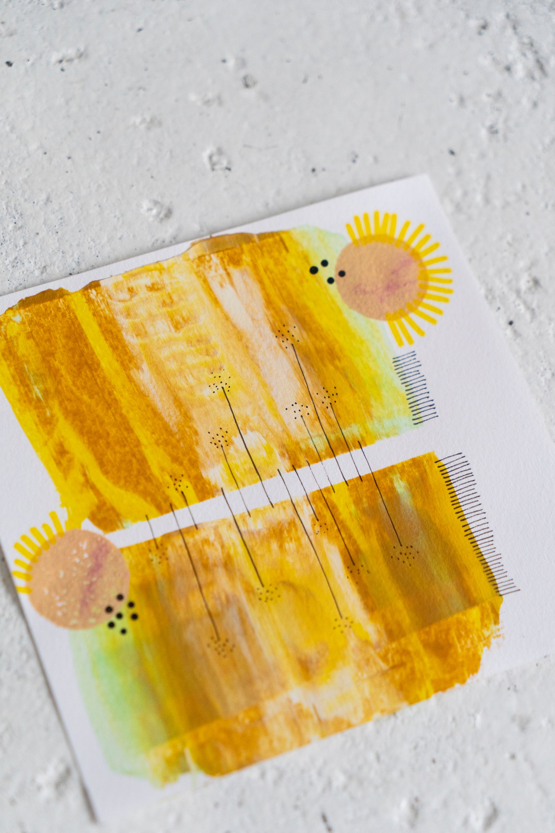 Ilustração original pintada à mão em papel, criada com tinta acrílica.