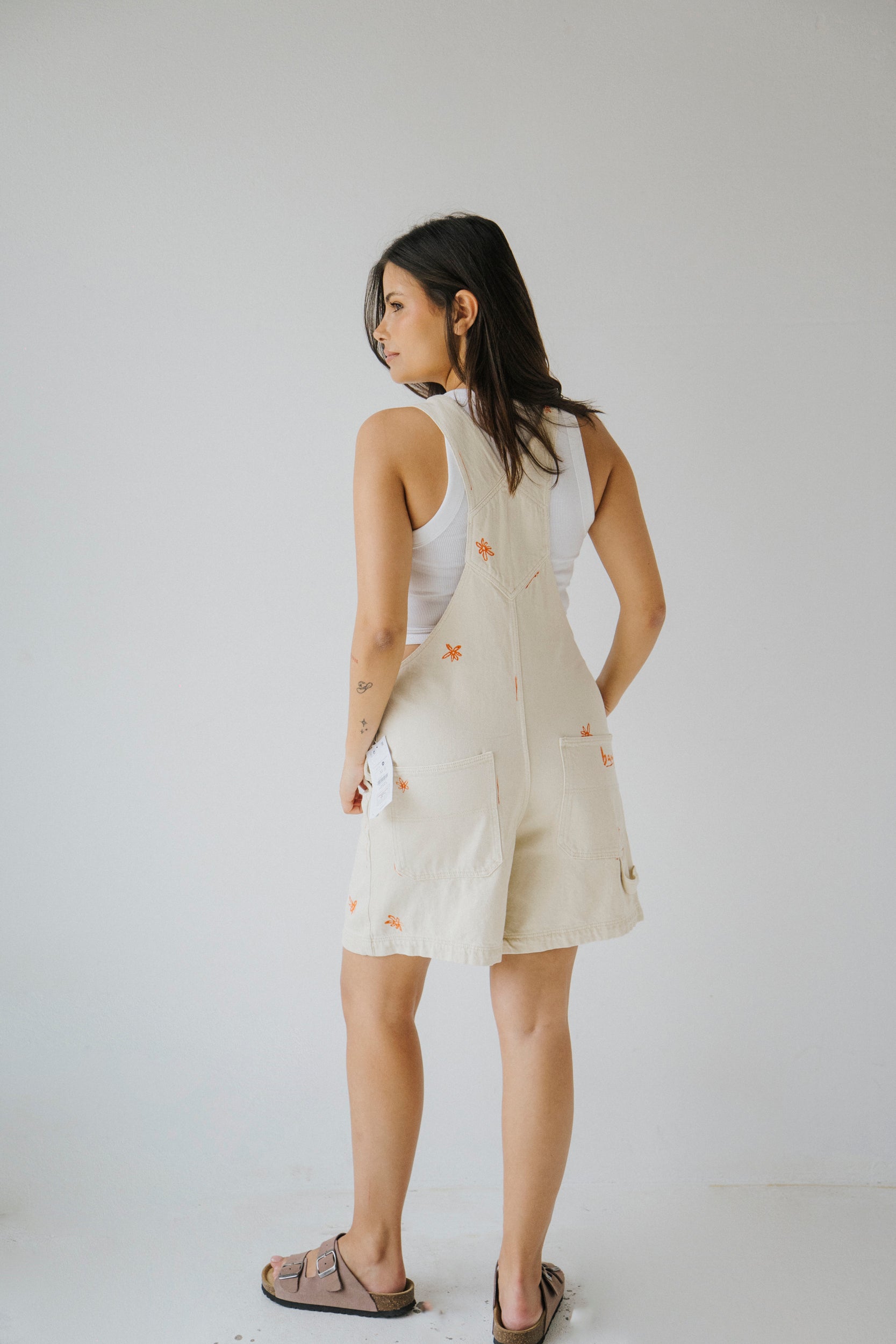 Macacão calção em segunda mão, nunca usado (com etiqueta), transformado com pintura manual que torna cada peça única.